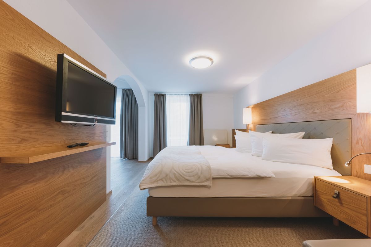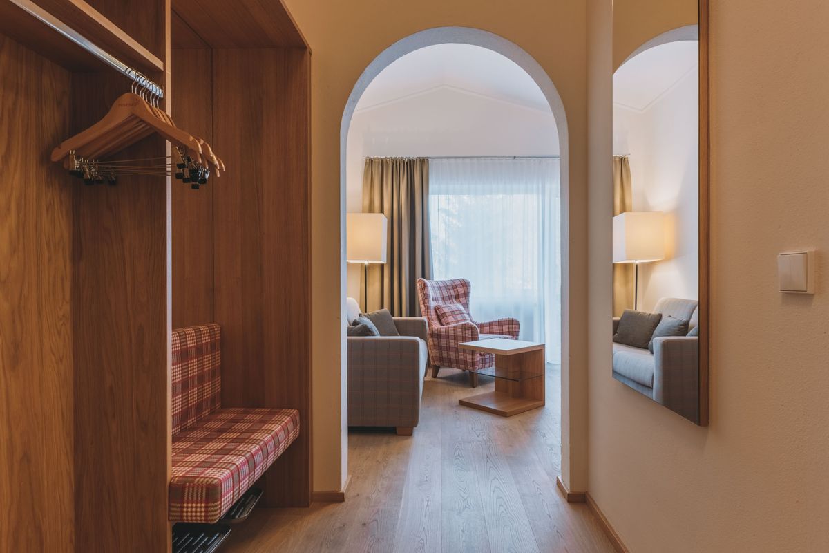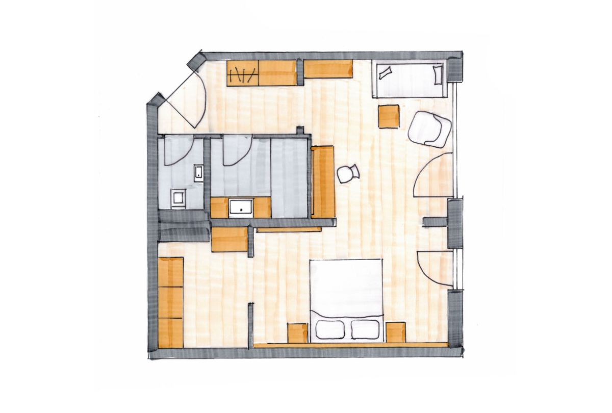 Edles Eichenholz, modernes Interieur und exklusive Ausstattung machen diese 55 m² große Junior Suite mit Balkon auf der Ostseite des Hauses zu einem stilvollen Rückzugsort. Der getrennte Wohn- und Schlafbereich mit Ankleideraum bietet viel Platz zum Entspannen und Erholen, während der Balkon zum Genießen der ersten Sonnenstrahlen des Tages einlädt.