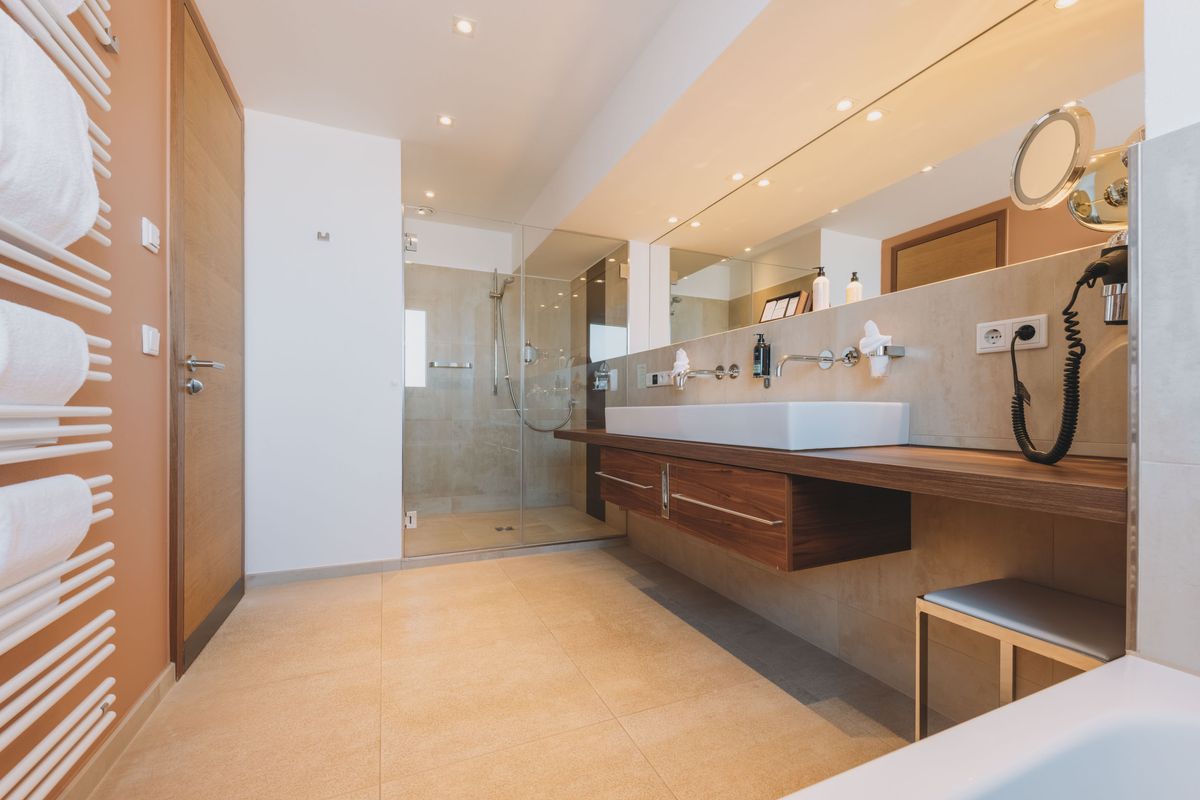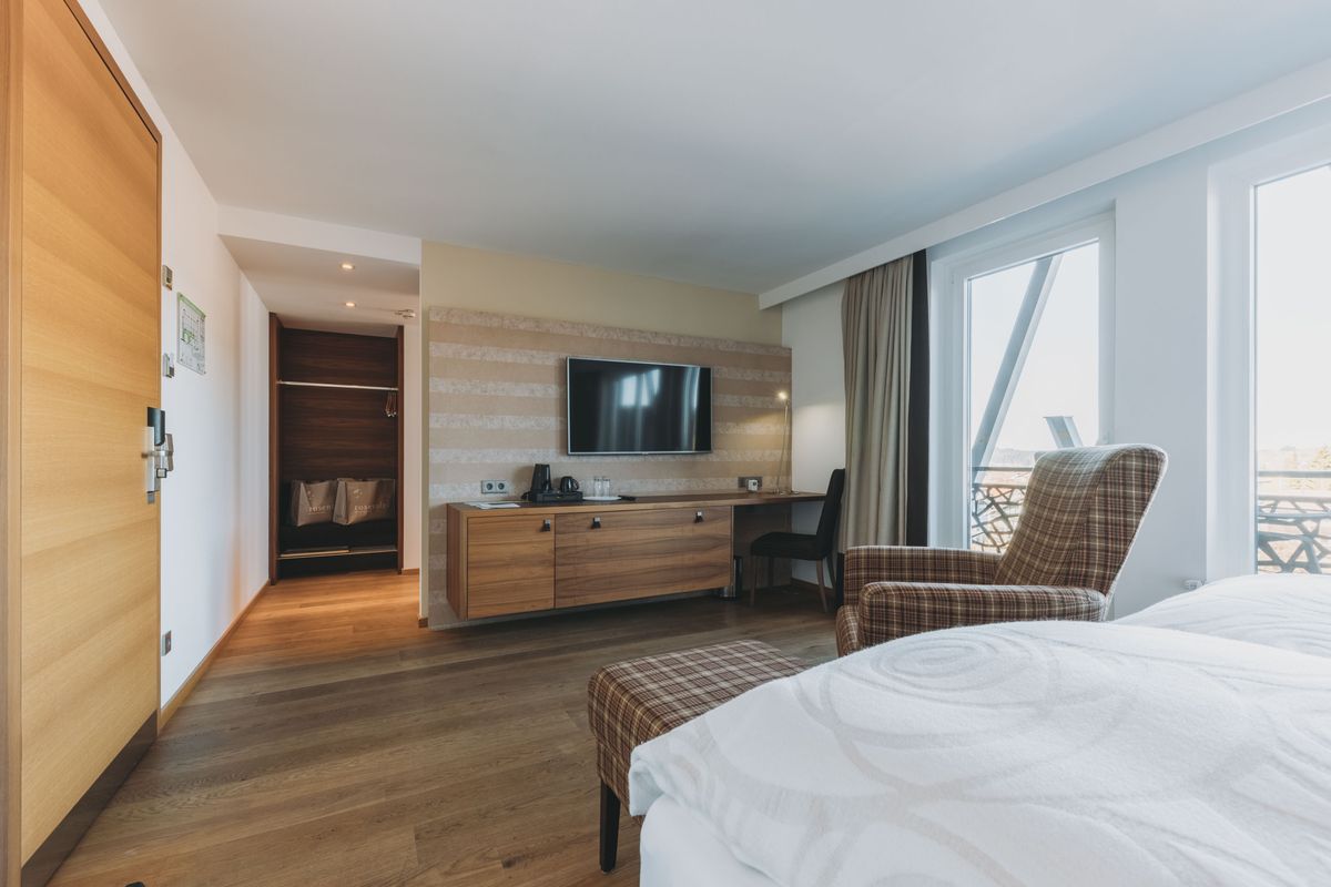 Dieses ca. 32 m² große Doppelzimmer auf der obersten Etage auf der Nordseite verbindet modernes Interieur mit hochwertiger Ausstattung. Wohn- und Schlafbereich schaffen ein behagliches Ambiente, das zum Entspannen und Wohlfühlen einlädt. Das Badezimmer ist mit Dusche und Badewanne ausgestattet. Vom Balkon genießen Sie den herrlichen Blick auf die sanften Allgäuer Voralpen.