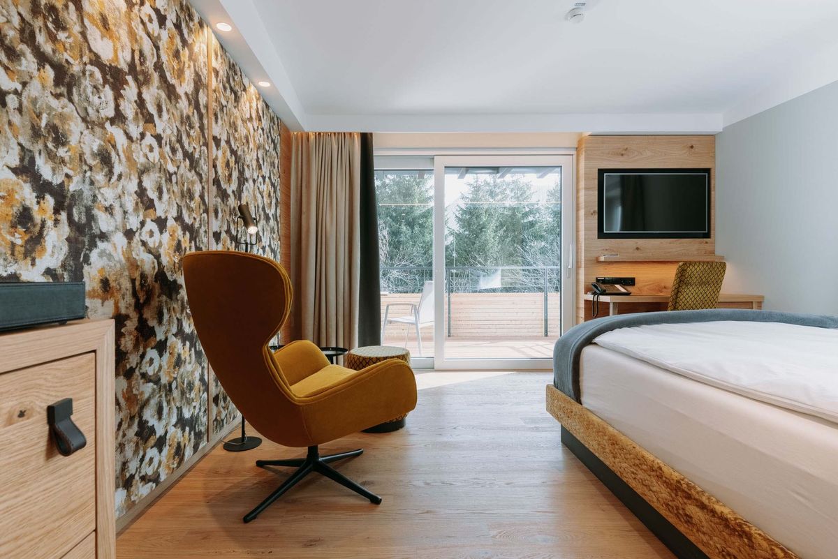 Ein Ort zum Wohlfühlen in zeitgemäßem Ambiente. Die 27 m² großen Einzelzimmer überzeugen mit klarer Eleganz und warmen Farben. Edles Eichenholz, hochwertige Stoffe und moderner Komfort schaffen eine behagliche Atmosphäre zum Ankommen und Entspannen. Ein Balkon in Ost- oder Westlage sorgt für eine stimmungsvolle Atmosphäre zu unterschiedlichen Tageszeiten.