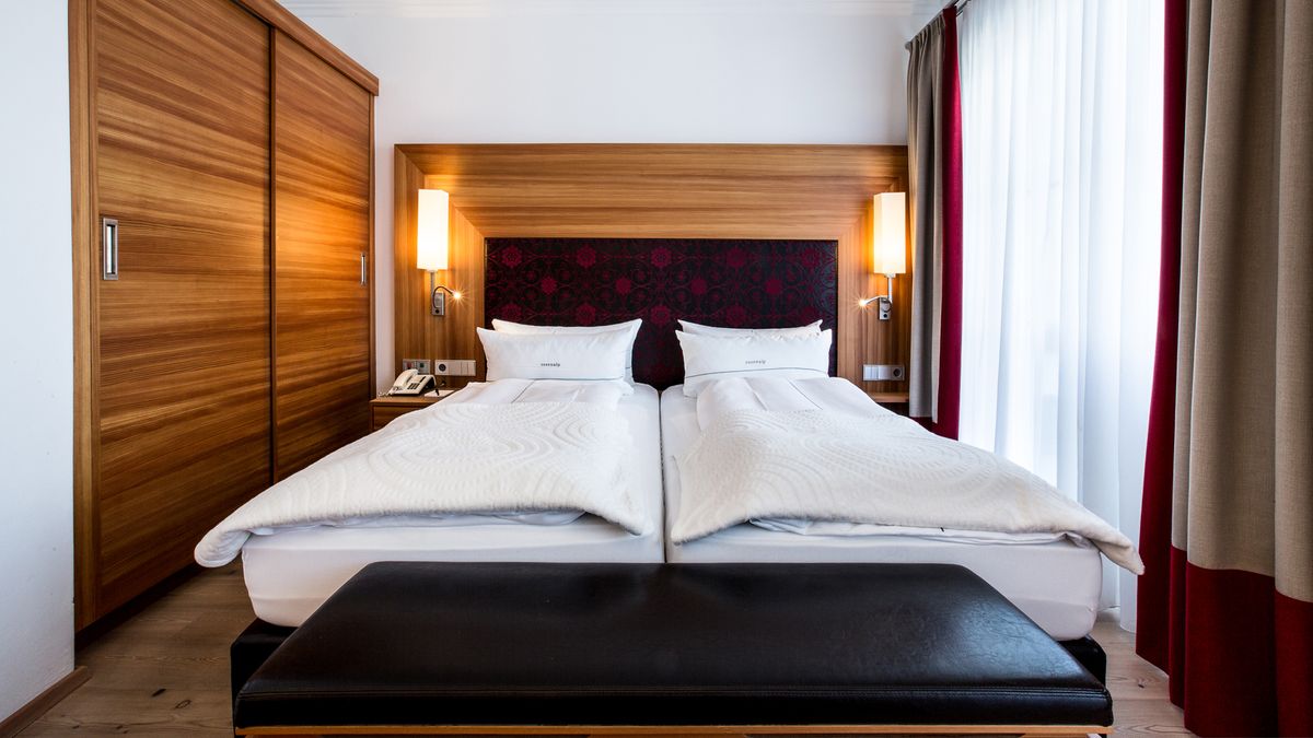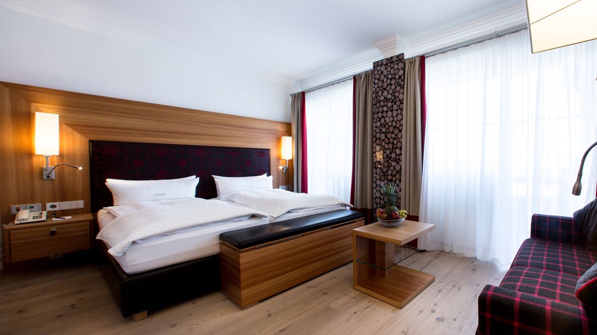Herzerwärmend, dieses wunderbare Ambiente mit viel gemütlichem Holz. Über einen warmen Empfang dürfen Sie sich in diesen gut 30 m2 großen Doppelzimmern jedes Mal aufs Neue freuen, wenn Sie Ihr Zimmer betreten. Denn durch viel warmes Holz wirken die exklusiv ausgestatteten Doppelzimmer mit Balkon, die auf der Nord- oder Nordwestseite des Hauses liegen, besonders einladend und gemütlich.